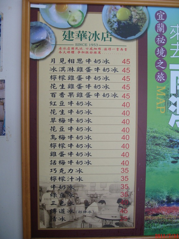 2011/7/11(一)晴 經過蘇花公路那麼多次第一次停下來吃冰 點了份傳道冰(45元)來吃吃 還不錯吃,不過很小一碗就是了 地址:宜蘭縣南澳鄉蘇花路二段419號 台九線130公里處 電話:03-9981150 營業時間:AM 07:00 ~ PM 11:00